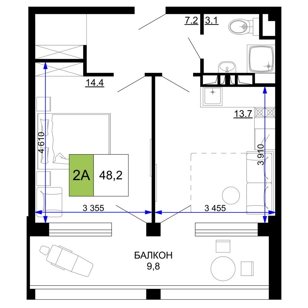 Продажа квартиры в новостройке в Анапе 41-50 кв.м.