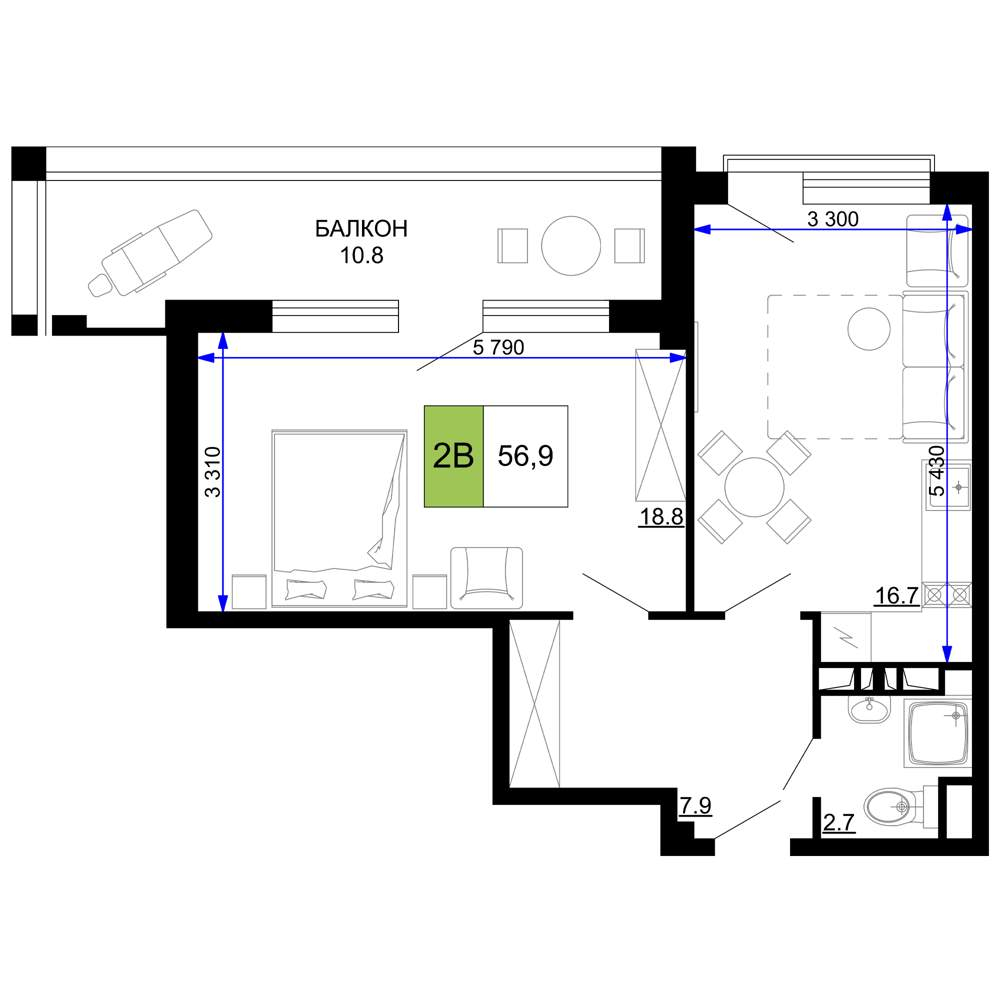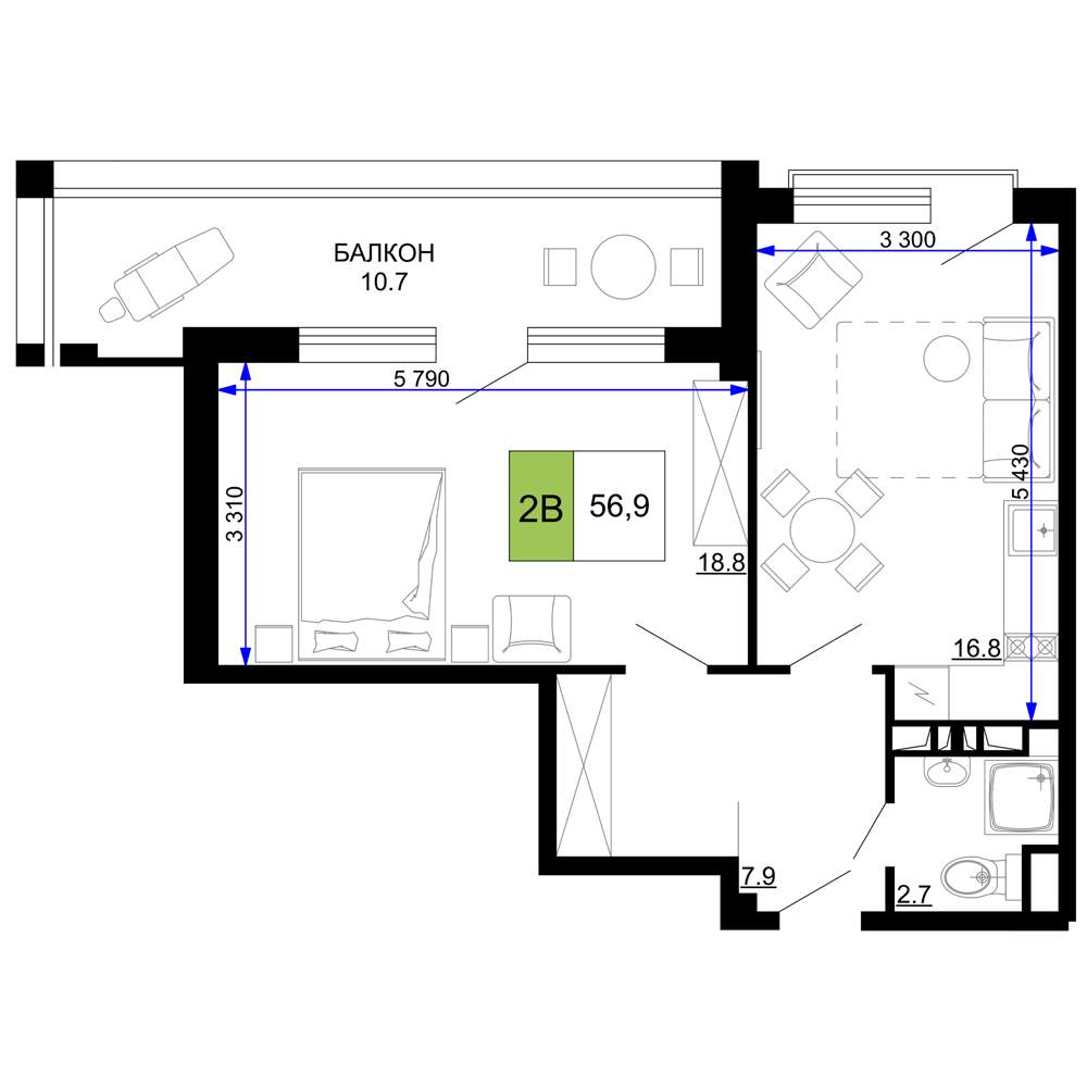 56.9 м2
