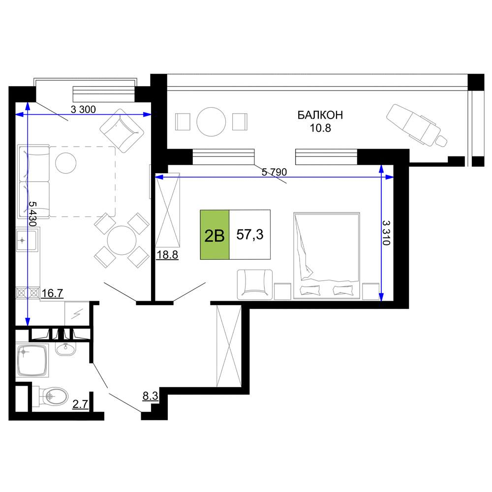 57.3 м2
