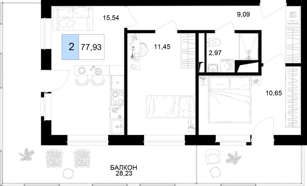 Продаются 2 комн. апартаменты, площадью 77.93 м2 в монолитной новостройке. Возможен вариант покупки с использованием ипотечных средств, есть рассрочка, возможна покупка с использованием материнского капитала, есть военная ипотека.