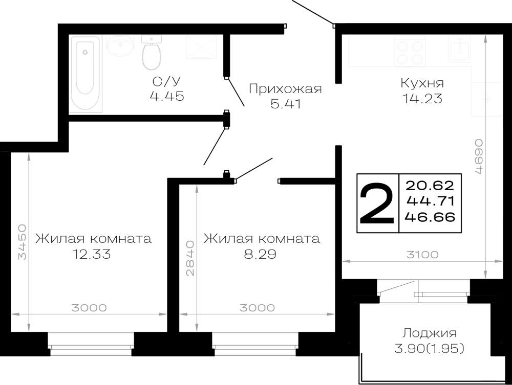 Продам двухкомнатную квартиру в новостройке 44 м.кв.
