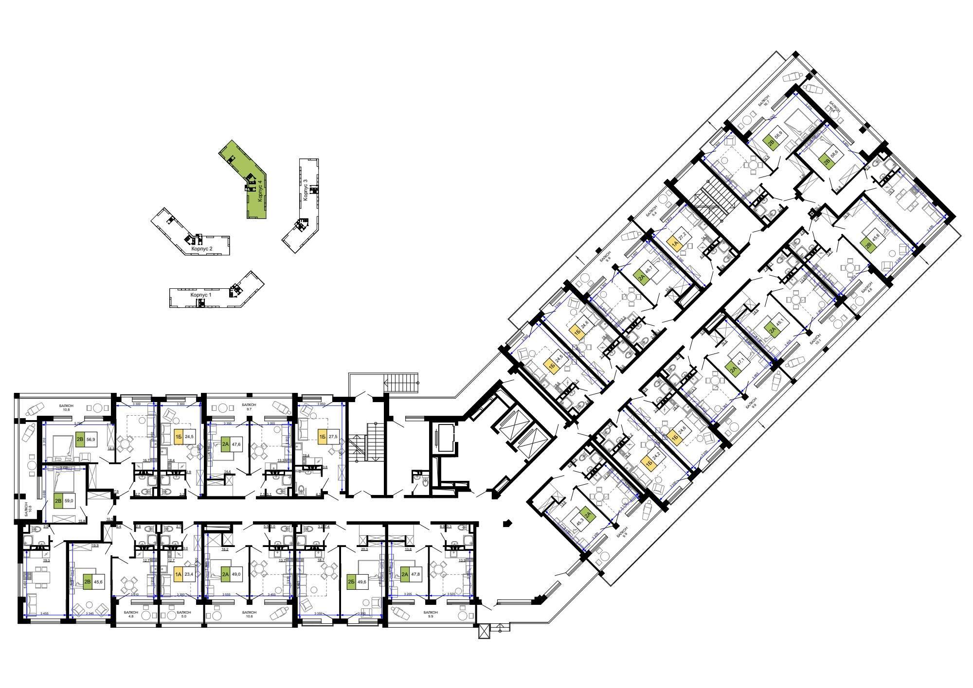 Квартира располагается на 2 этаже 9-этажного дома в ЖК Гостиничный комплекс Мореград.