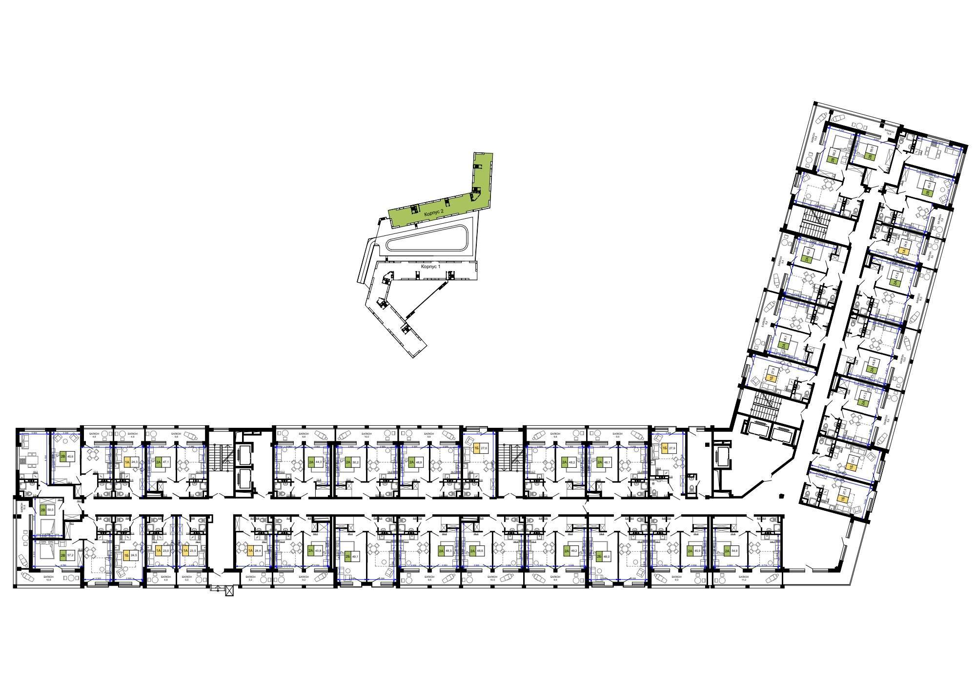 Квартира располагается на 2 этаже 9-этажного дома в ЖК Гостиничный комплекс Мореград.