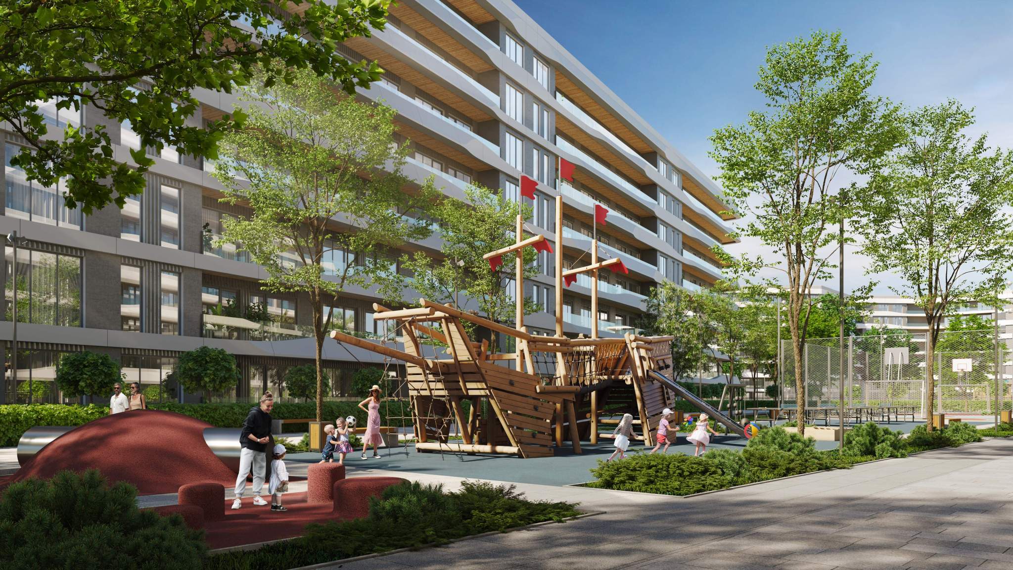 Подземная парковка, парковка охраняется. Обеспечение безопасности: видеонаблюдение, круглосуточная охрана, противопожарная система. Инфраструктура: детские площадки, спортивные площадки, места для отдыха, супермаркет, рестораны, пункты бытового обслуживания, коммерческие объекты.