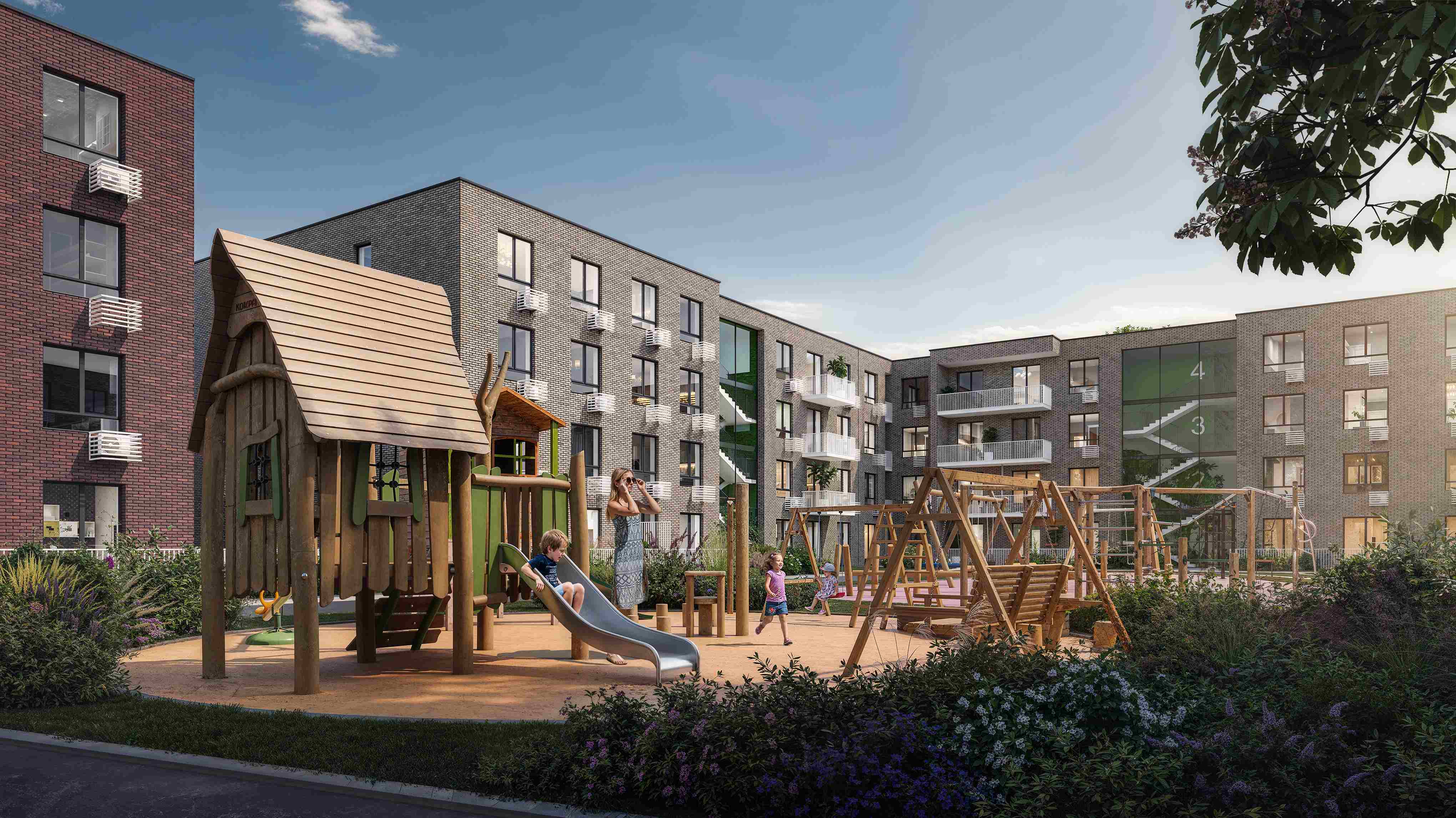 Территория комплекса будет благоустроена с акцентом на экологию и комфорт. Планируется озеленение с использованием местных растений, что улучшит внешний вид и создаст приятную атмосферу. Современные технологии, такие как динамическое освещение и зоны для зарядки гаджетов, сделают жизнь удобной и комфортной.