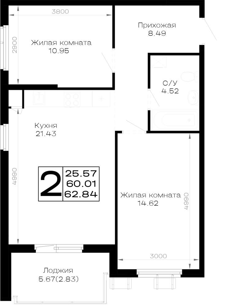 Жилая площадь 30.22 м2, кухня 25.46 м2, предчистовая отделка.