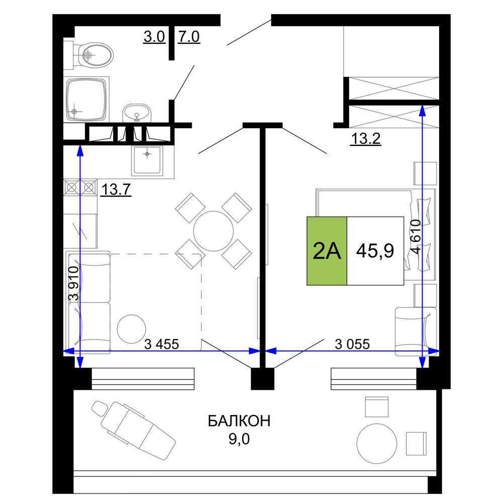 Продажа двухкомнатной квартиры в новостройке в Анапе 41-50 кв.м.