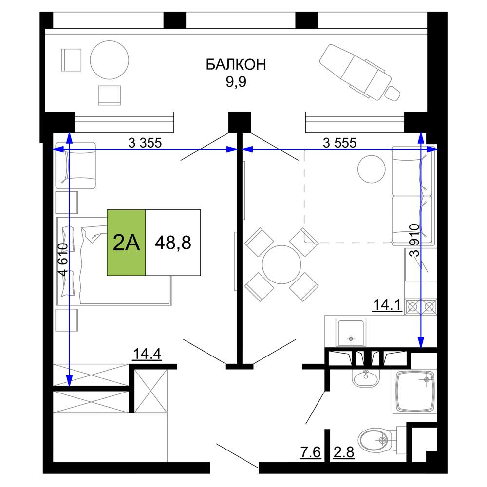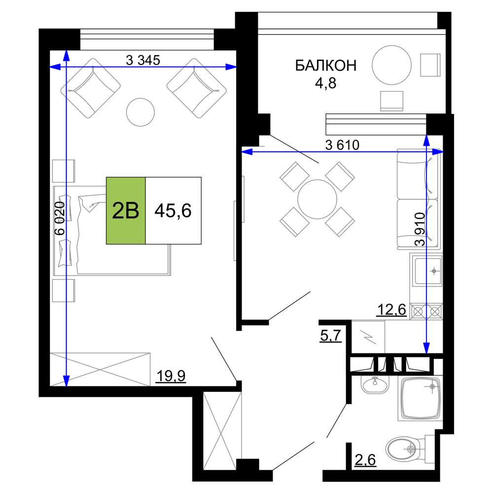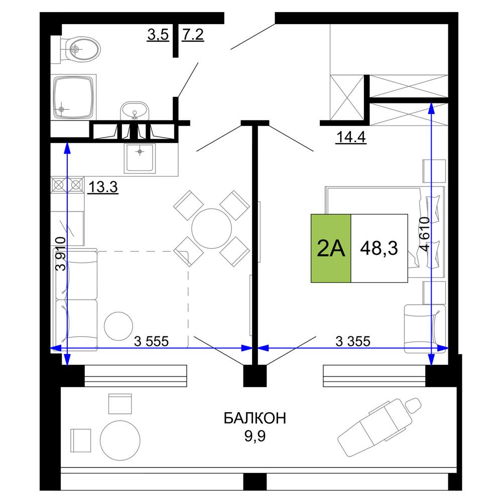 Продажа двухкомнатной квартиры в новостройке в Анапе 41-50 кв.м.