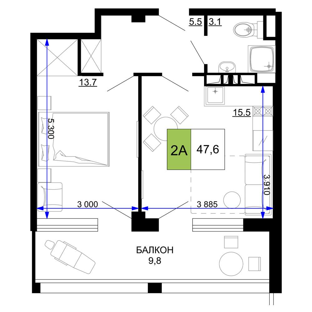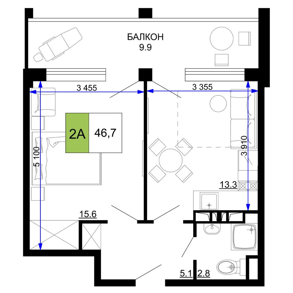Продажа двухкомнатной квартиры в новостройке в Анапе 41-50 кв.м.