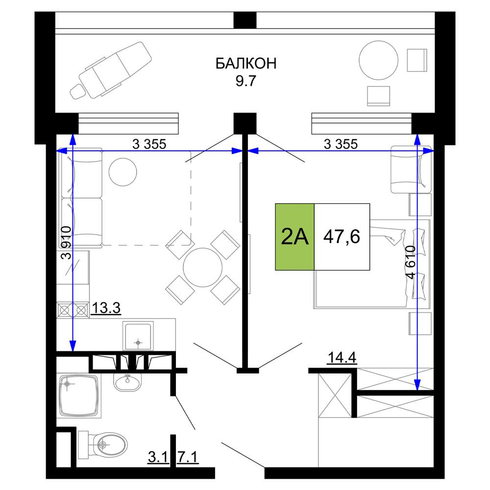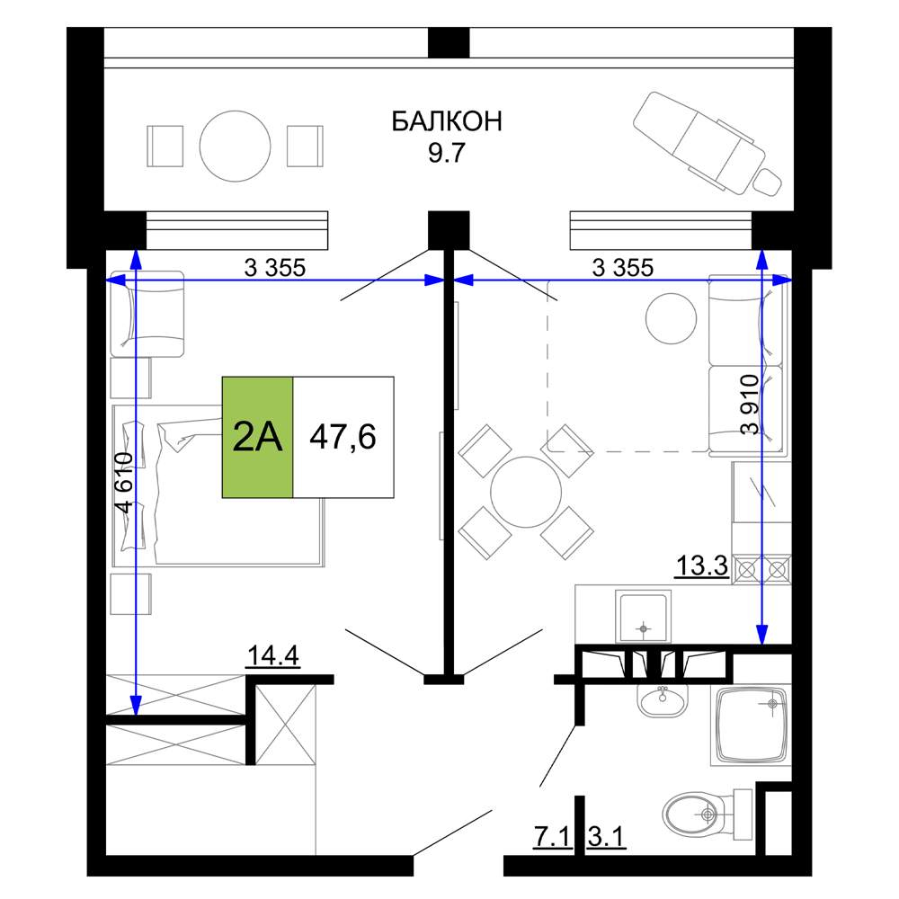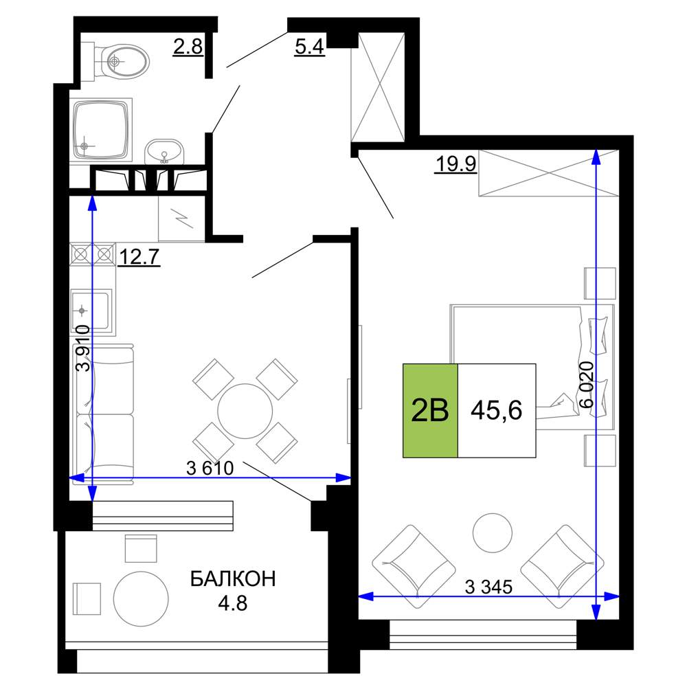 Продажа двухкомнатной квартиры в новостройке в Анапе 41-50 кв.м.