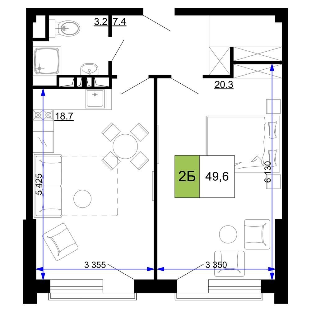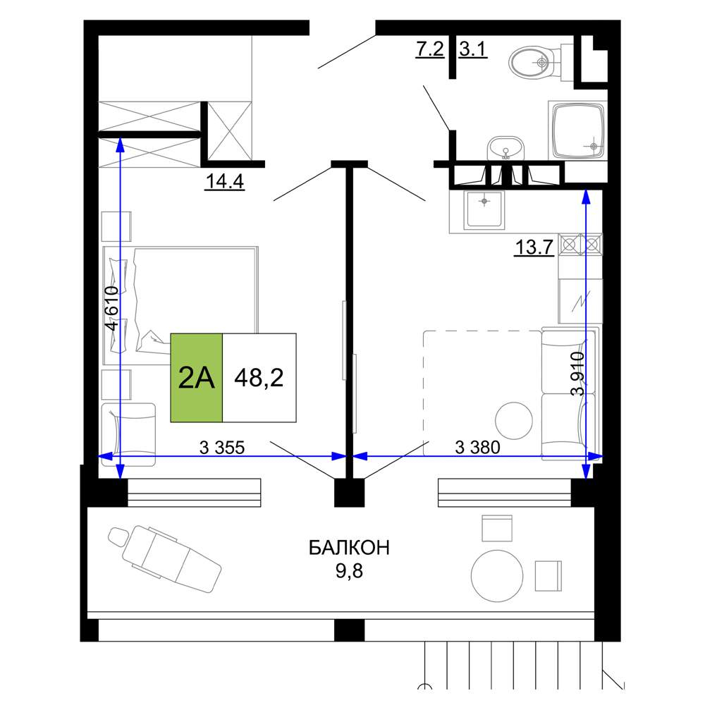 Продажа двухкомнатной квартиры в новостройке в Анапе 41-50 кв.м.