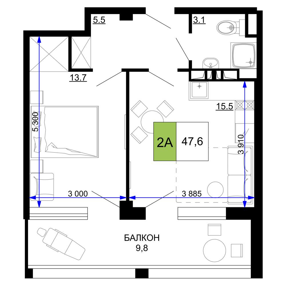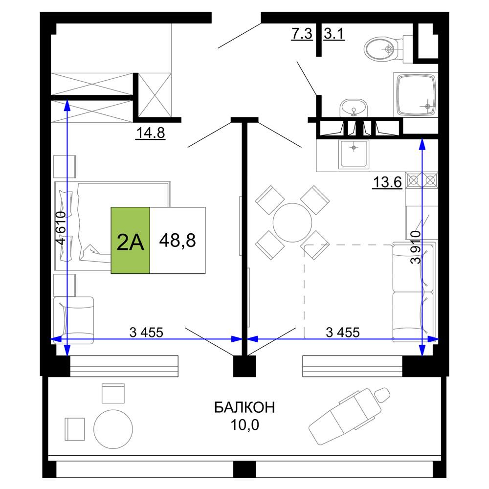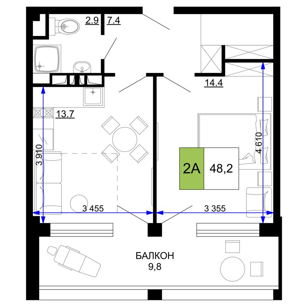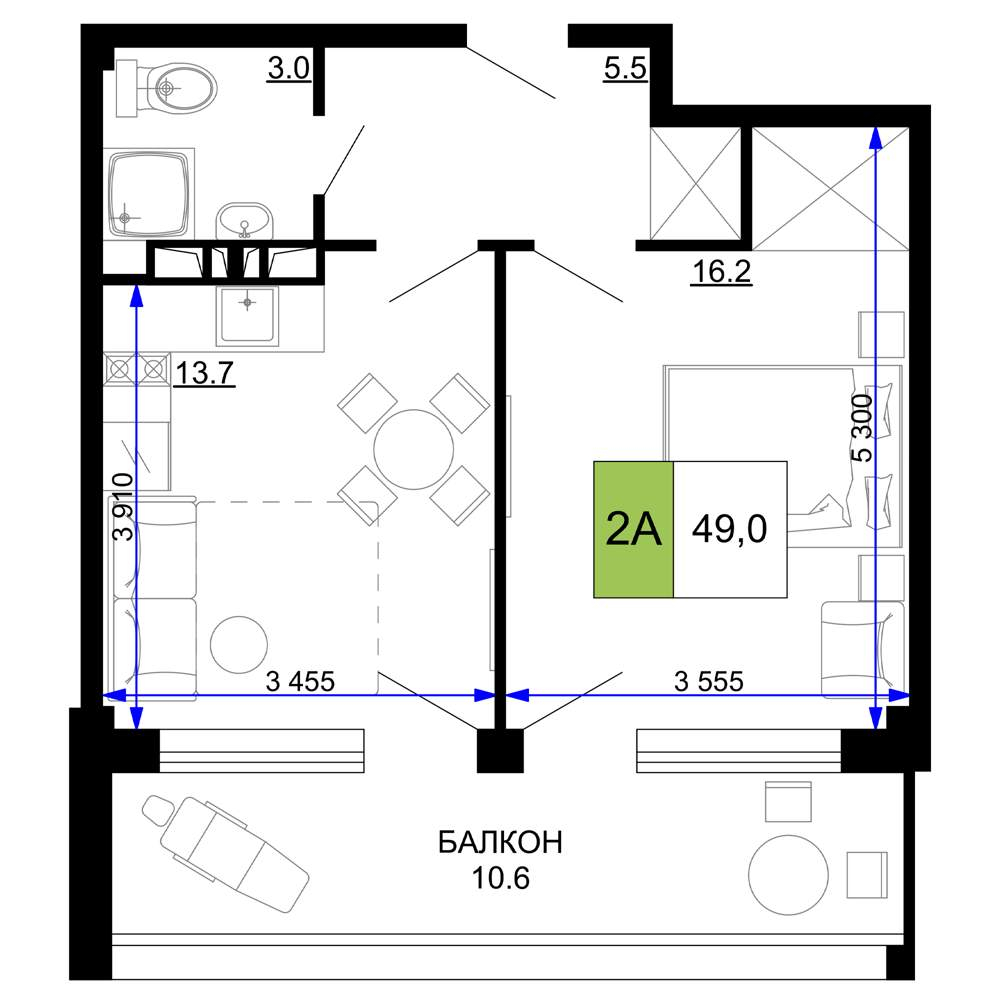 Продажа двухкомнатной квартиры в новостройке в Анапе 41-50 кв.м.