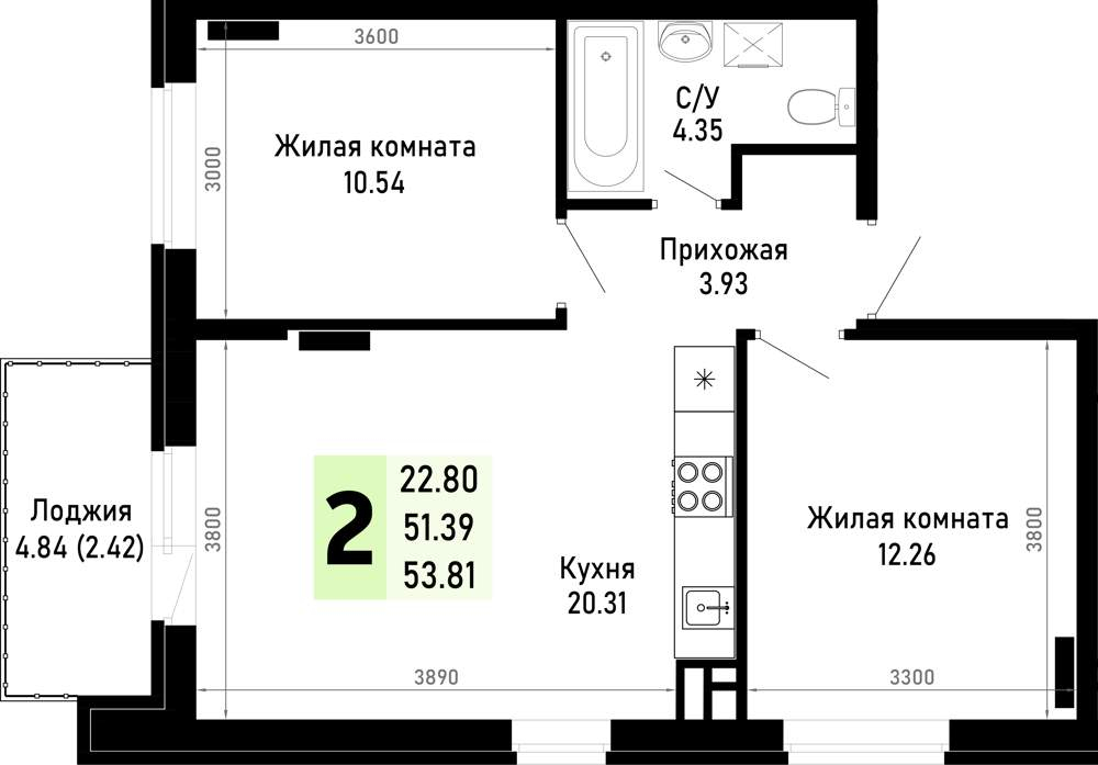 Продажа двухкомнатной квартиры в новостройке в Анапе 51-100 кв.м.
