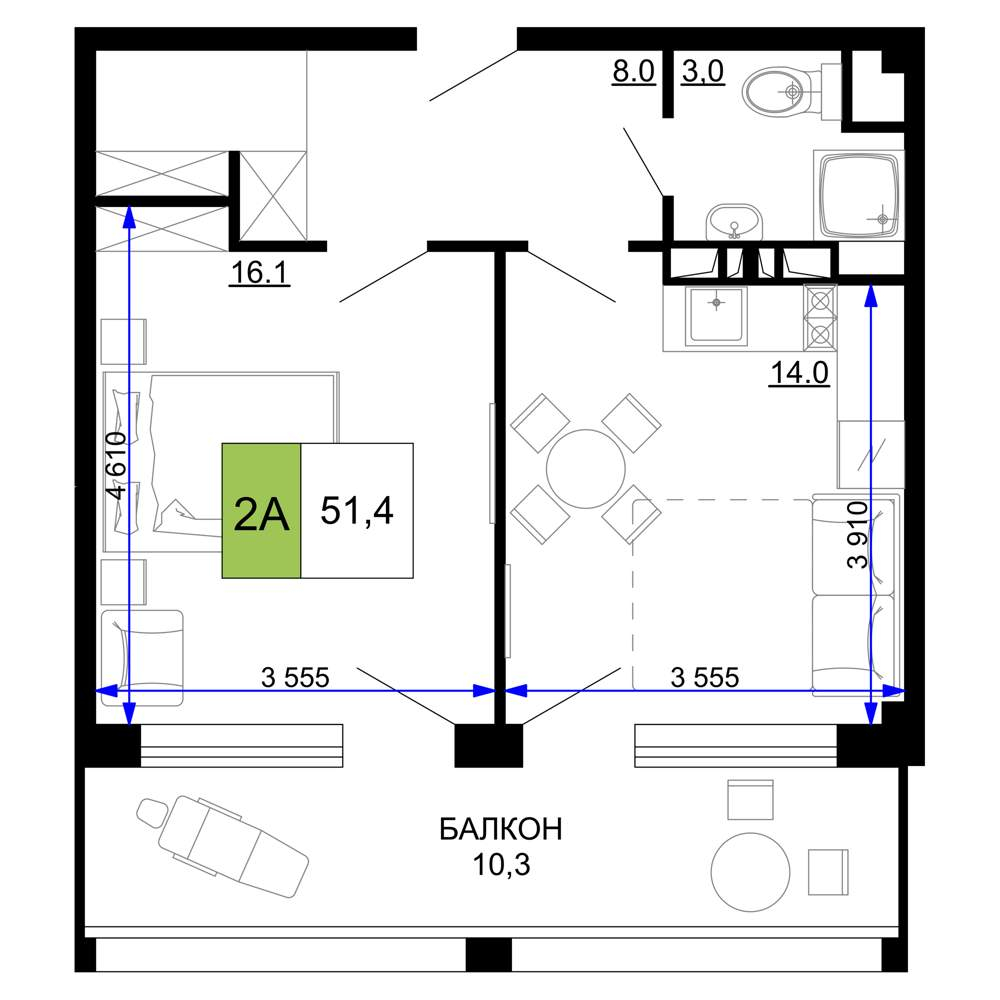 Продажа двухкомнатной квартиры в новостройке в Анапе 51-100 кв.м.