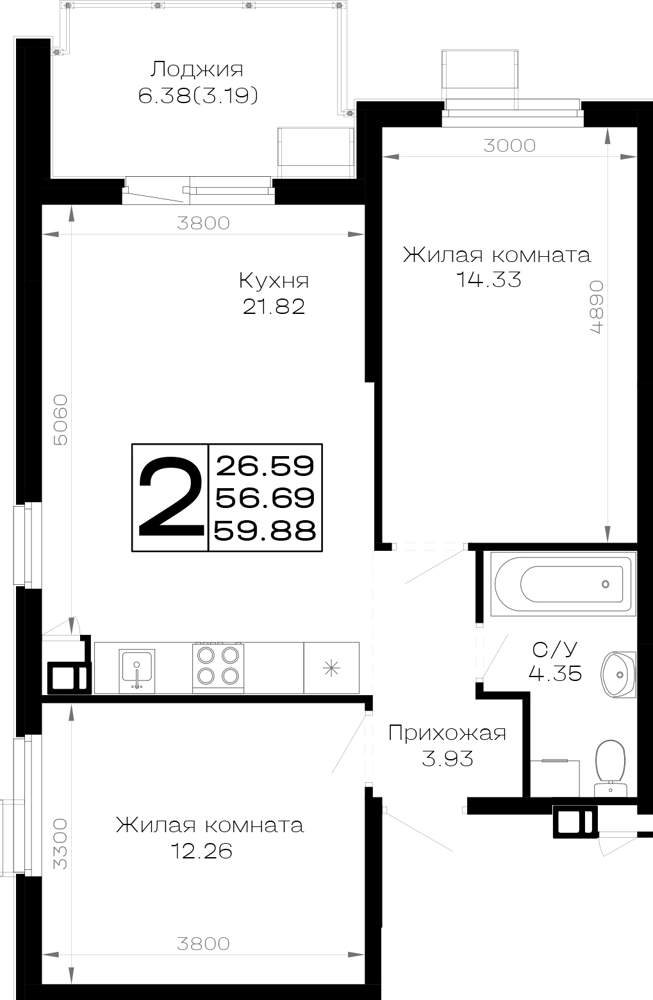 Продажа двухкомнатной квартиры в новостройке в Анапе 51-100 кв.м.