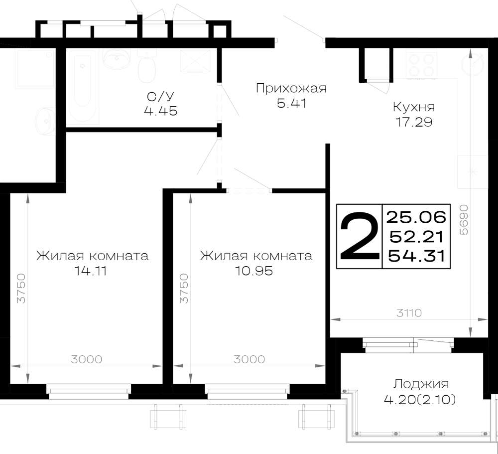 Продажа двухкомнатной квартиры в новостройке в Анапе 51-100 кв.м.