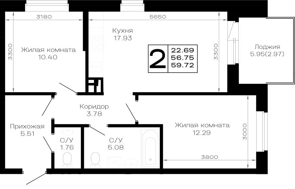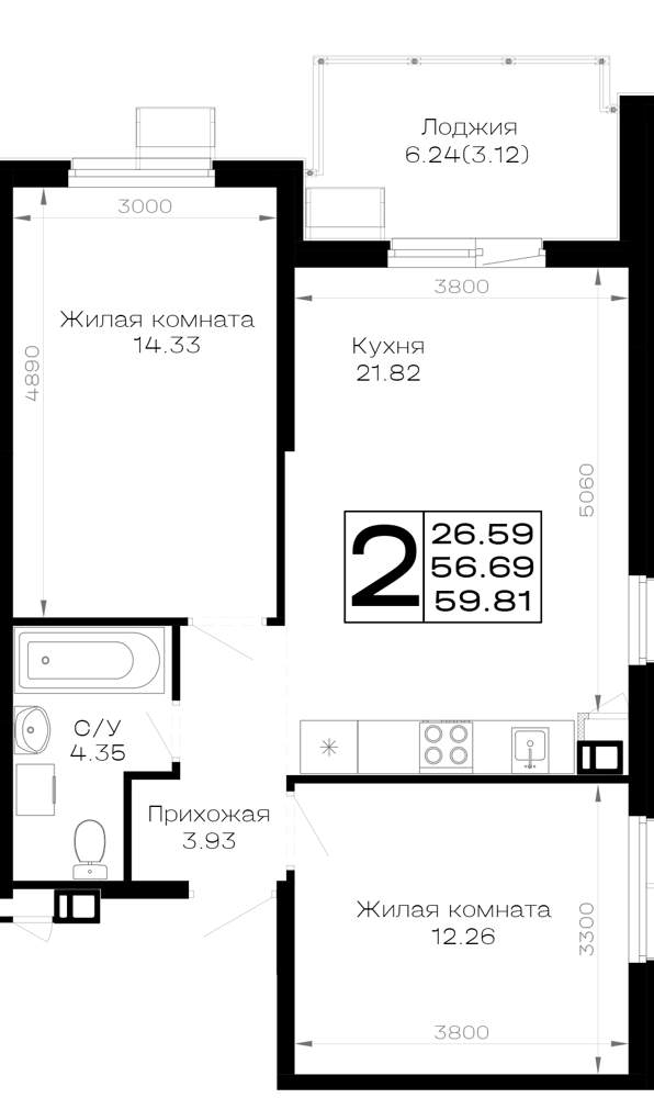 Продажа двухкомнатной квартиры в новостройке в Анапе 51-100 кв.м.