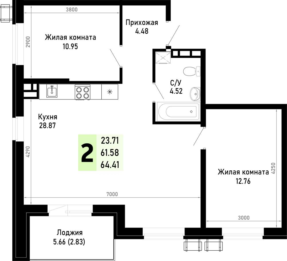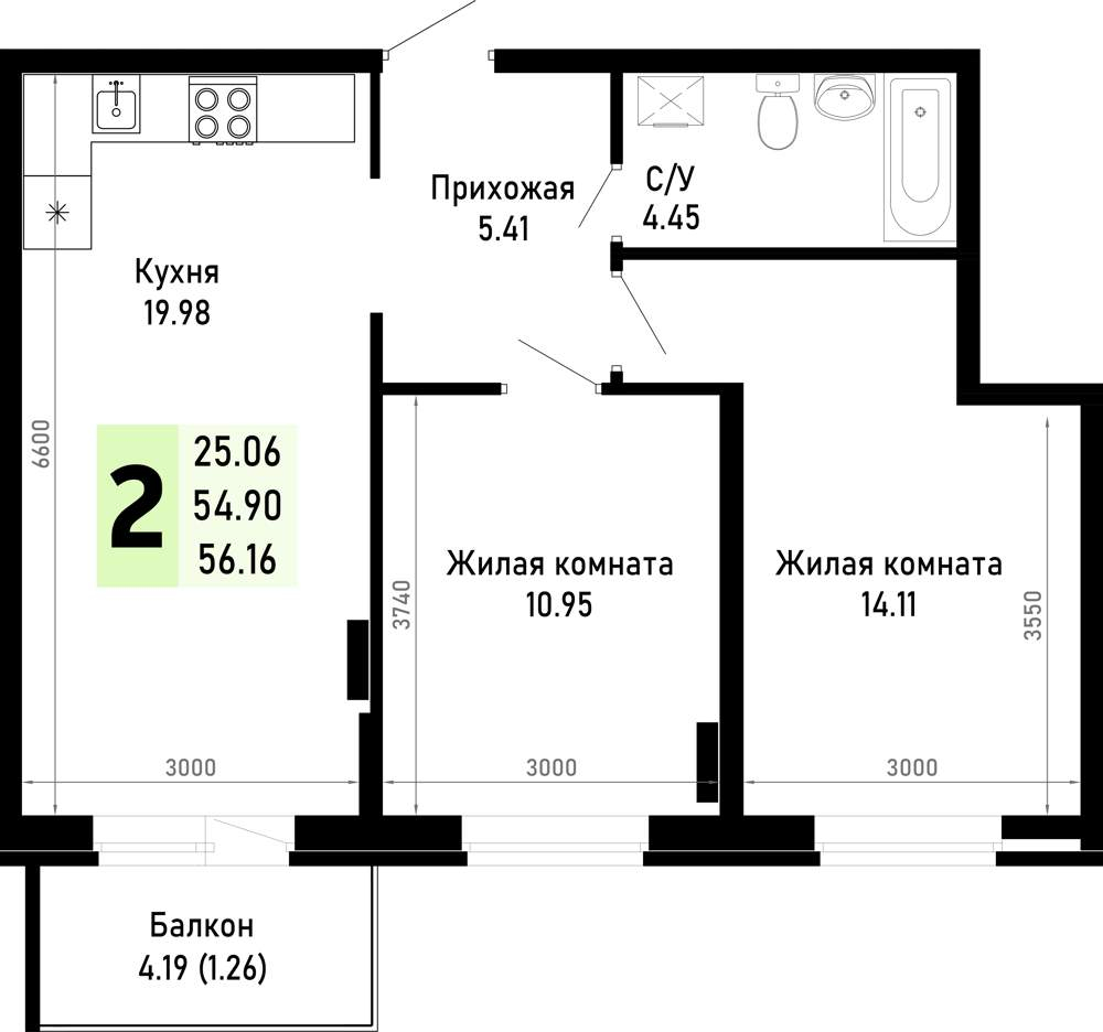 Продажа двухкомнатной квартиры в новостройке в Анапе 51-100 кв.м.