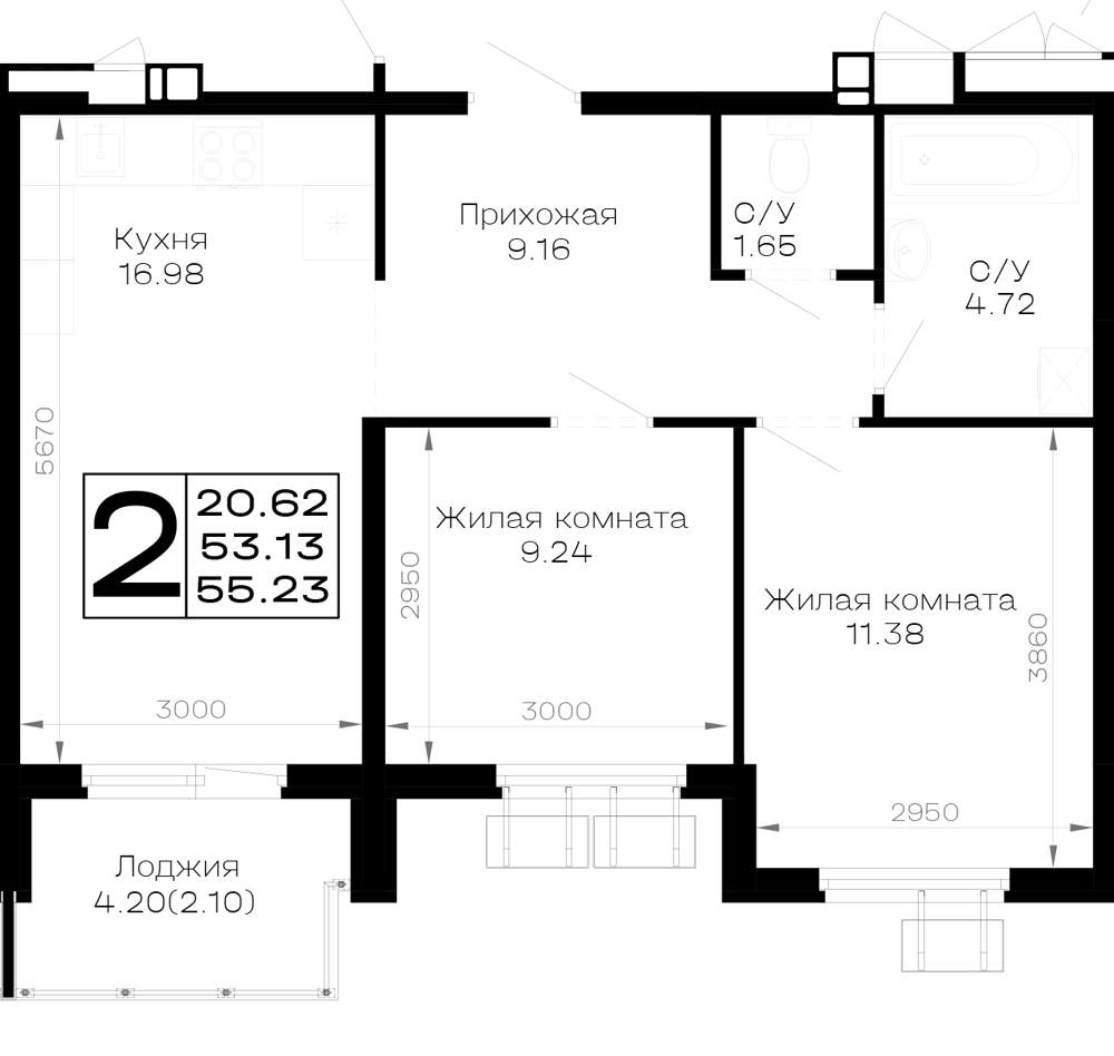 Продажа двухкомнатной квартиры в новостройке в Анапе 51-100 кв.м.