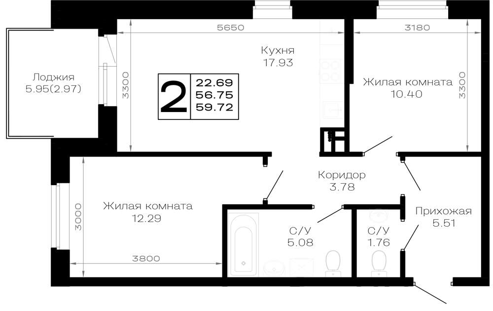 Продажа двухкомнатной квартиры в новостройке в Анапе 51-100 кв.м.