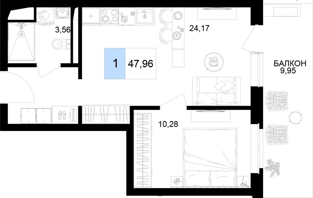Продаются 1 комн. апартаменты, площадью 47.96 м2 в монолитной новостройке. Возможен вариант покупки с использованием ипотечных средств, есть рассрочка, возможна покупка с использованием материнского капитала, есть военная ипотека.