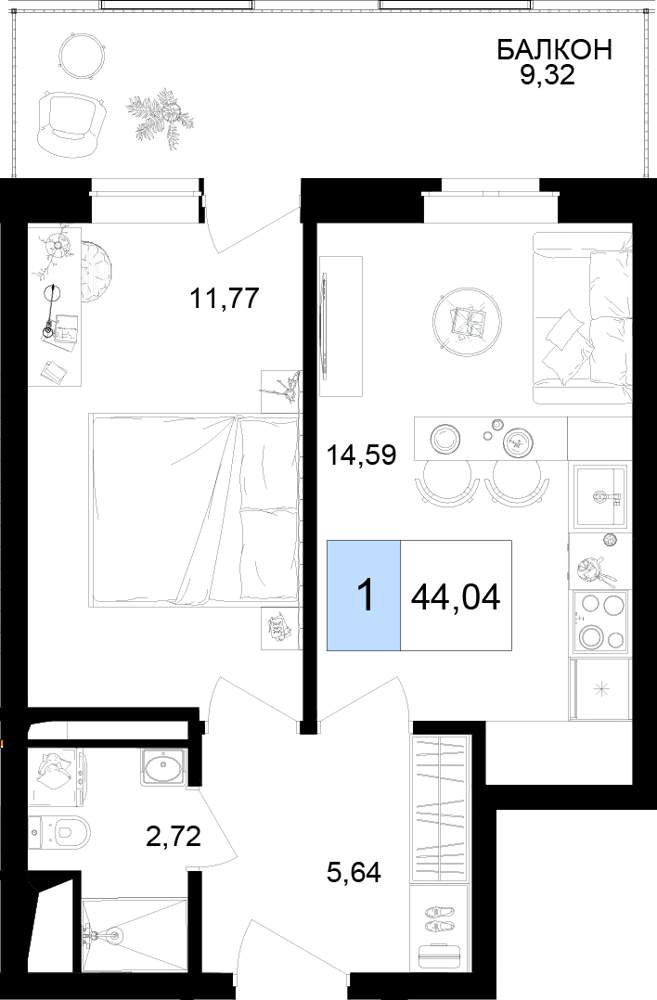 Продаются 1 комн. апартаменты, площадью 44.04 м2 в монолитной новостройке. Возможен вариант покупки с использованием ипотечных средств, есть рассрочка, возможна покупка с использованием материнского капитала, есть военная ипотека.
