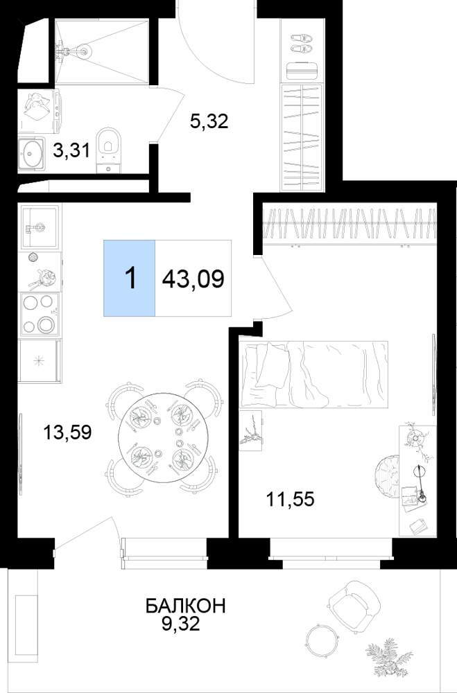 Продаются 1 комн. апартаменты, площадью 43.09 м2 в монолитной новостройке. Возможен вариант покупки с использованием ипотечных средств, есть рассрочка, возможна покупка с использованием материнского капитала, есть военная ипотека.