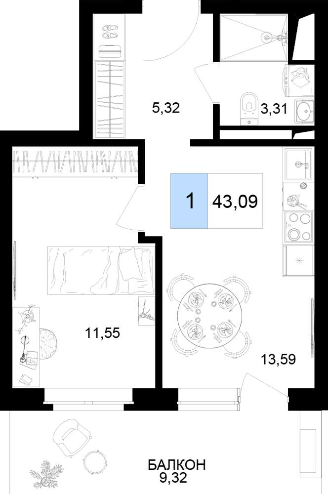 Продаются 1 комн. апартаменты, площадью 43.09 м2 в монолитной новостройке. Возможен вариант покупки с использованием ипотечных средств, есть рассрочка, возможна покупка с использованием материнского капитала, есть военная ипотека.