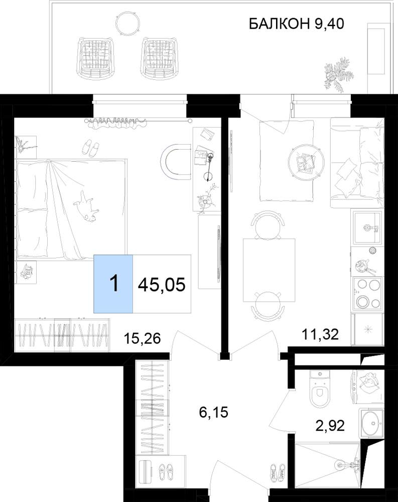 Продаются 1 комн. апартаменты, площадью 45.05 м2 в монолитной новостройке. Возможен вариант покупки с использованием ипотечных средств, есть рассрочка, возможна покупка с использованием материнского капитала, есть военная ипотека.