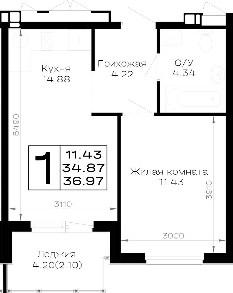 Продажа однокомнатной квартиры в новостройке в Анапе 30-40 кв.м.
