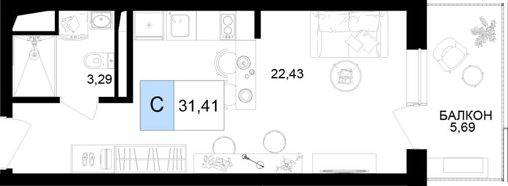 Продаются 1 комн. апартаменты-студия, площадью 31.41 м2 в монолитной новостройке. Возможен вариант покупки с использованием ипотечных средств, есть рассрочка, возможна покупка с использованием материнского капитала, есть военная ипотека.
