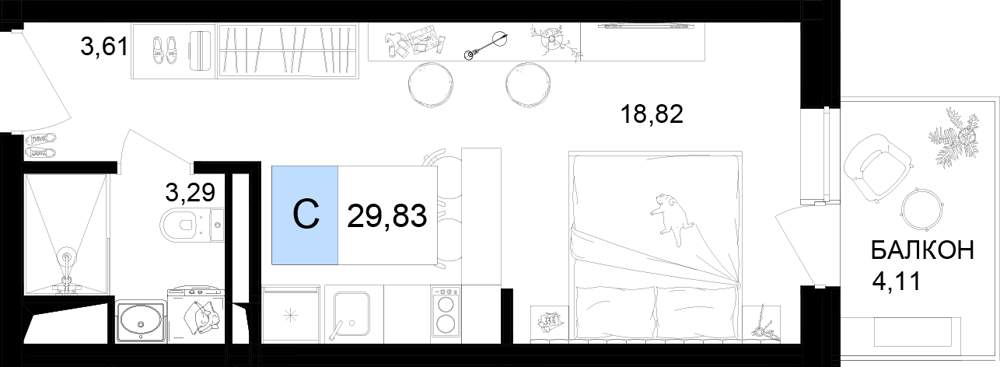 Продам квартиру-студию в новостройке 29.8 м.кв.