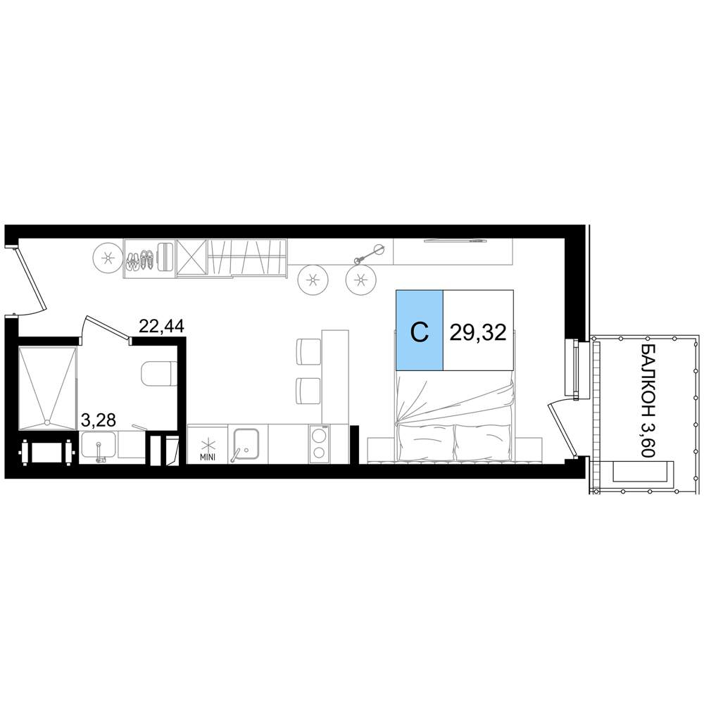 Продам квартиру-студию в новостройке 32.5 м.кв.