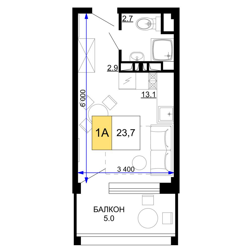 Продажа квартиры-студии в новостройке в Анапе от собственника