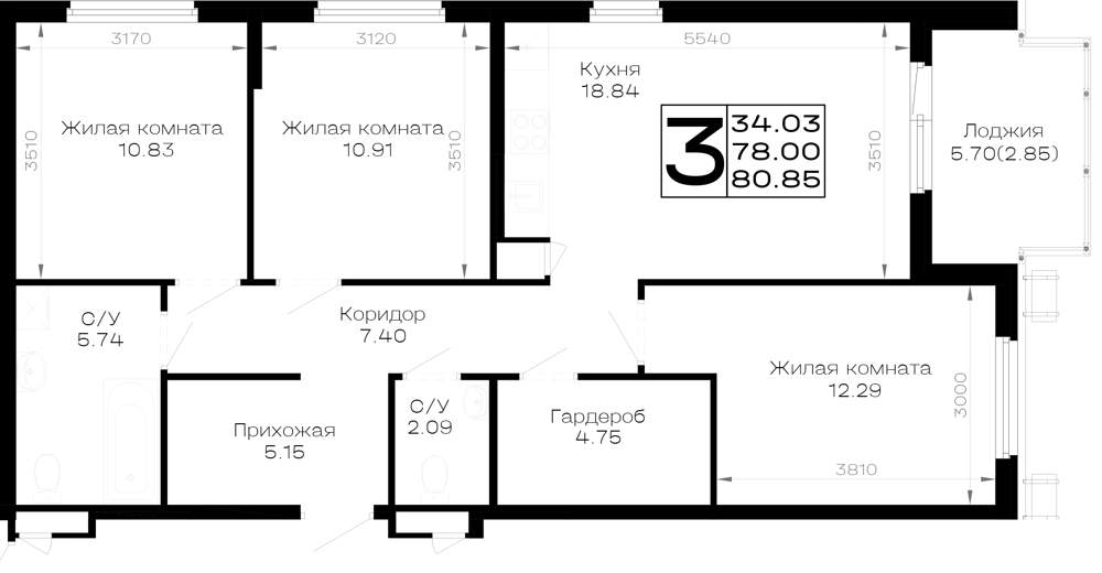 Продажа трехкомнатной квартиры в новостройке в Анапе от собственника