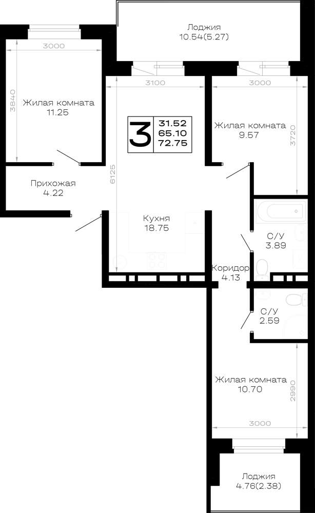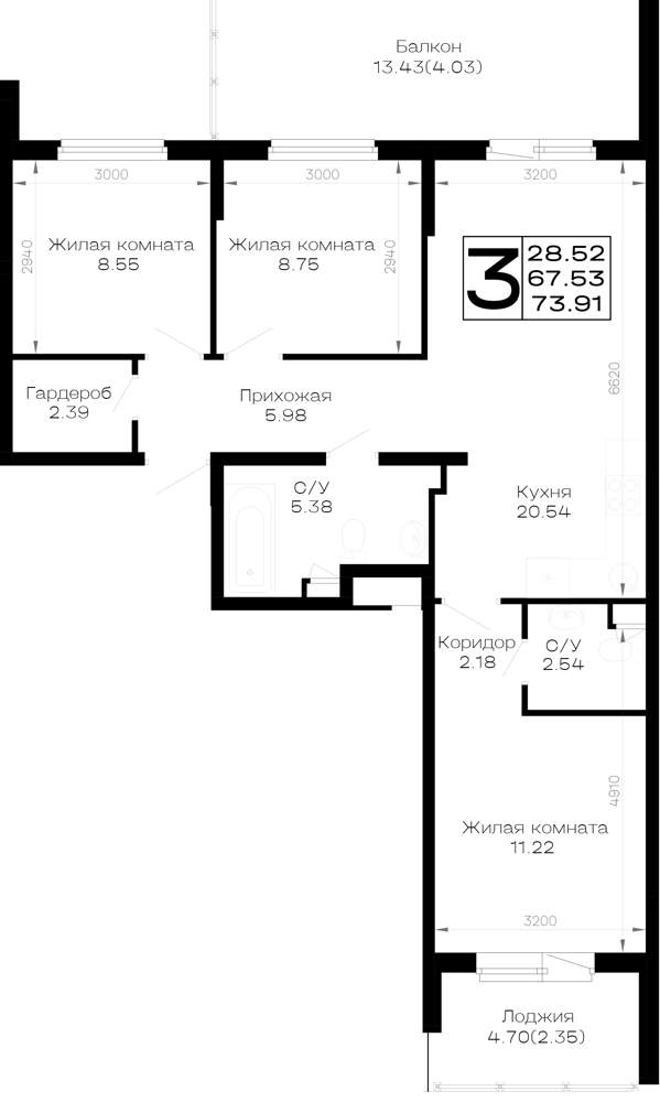 Продажа трехкомнатной квартиры в новостройке в Анапе от собственника