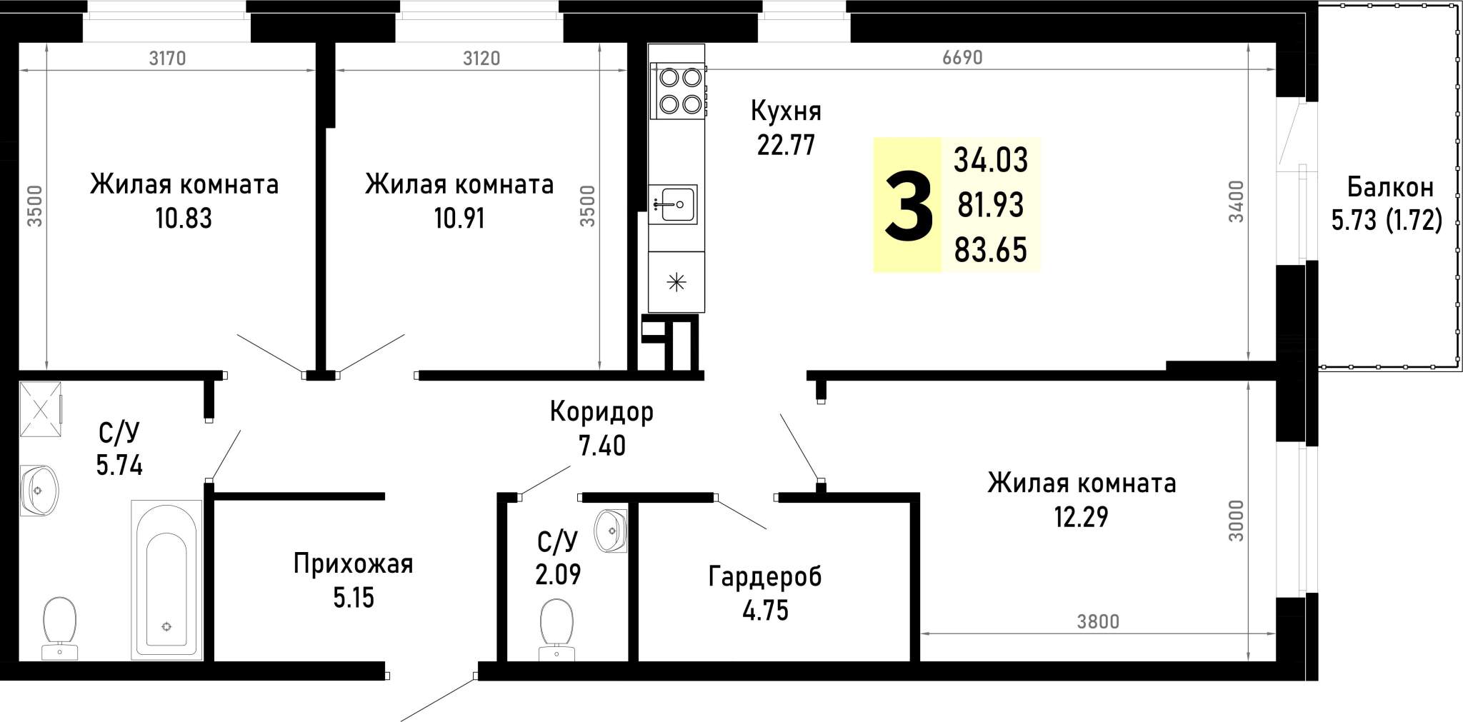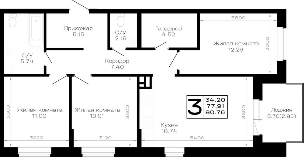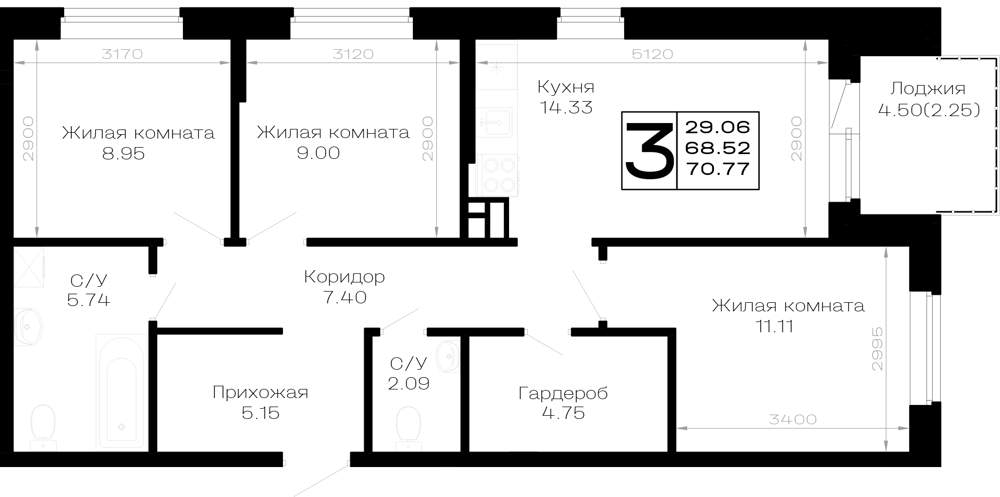 Продажа трехкомнатных квартир в новостройках в Анапе