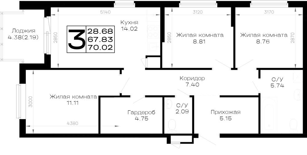 66.8 м2
