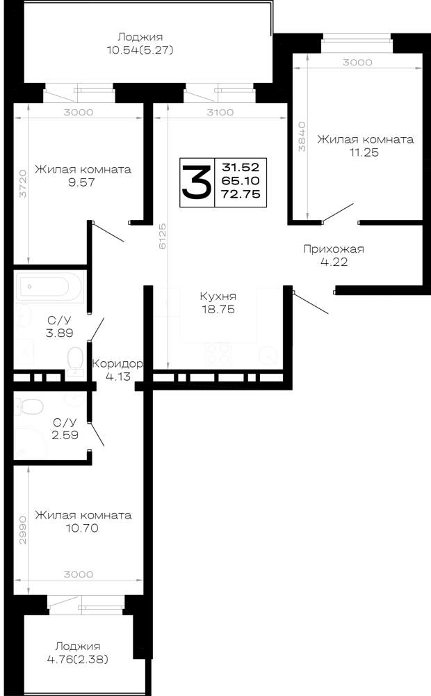 Продажа трехкомнатных квартир в новостройках в Анапе