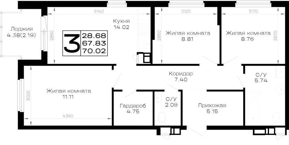 70.8 м2
