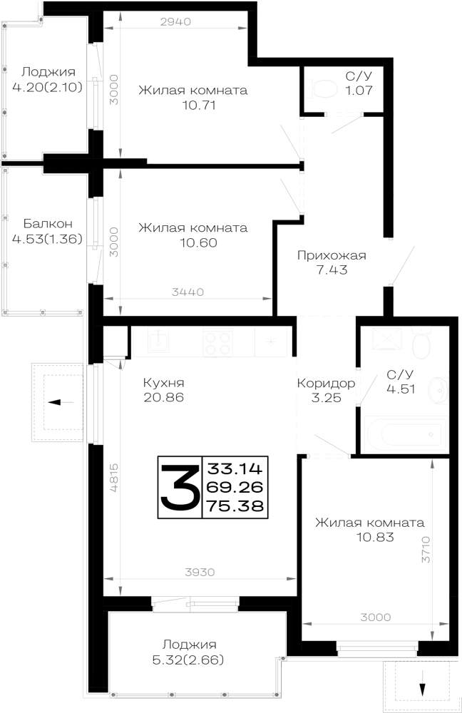Продажа трехкомнатных квартир в новостройках в Анапе