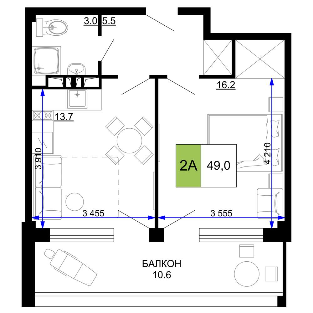 55 м2