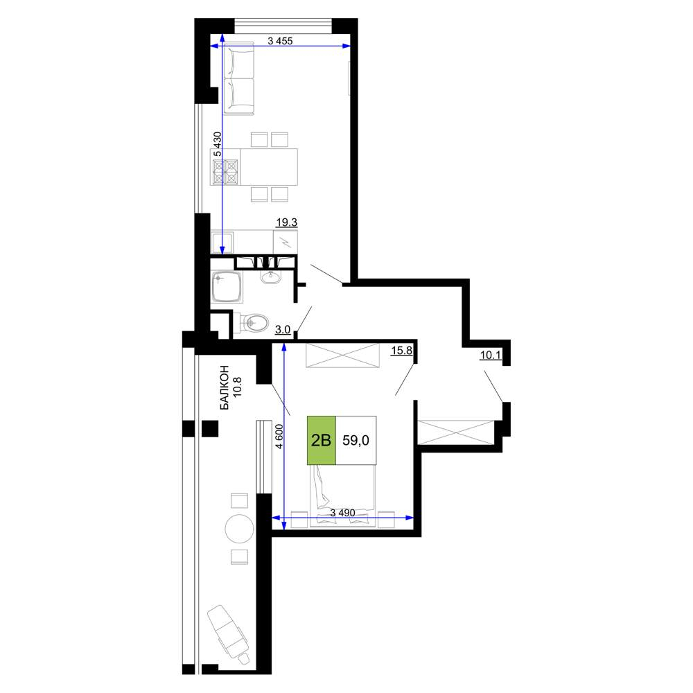 55.4 м2