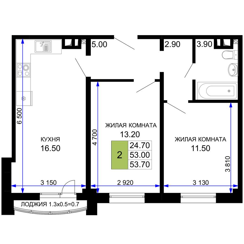 54.3 м2