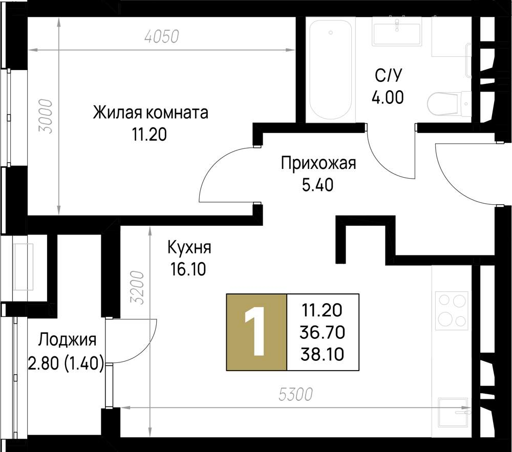 38.1 м2
